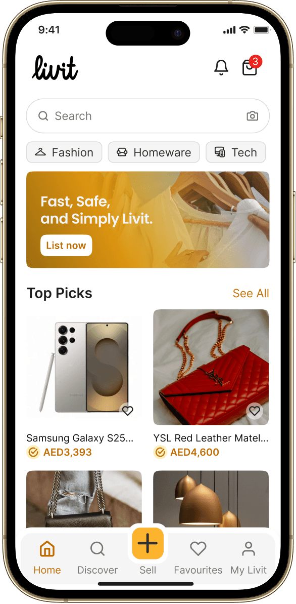 Livit is a Dubai-built marketplace for buying and selling fashion, tech, and household items. With verified users, secure in-app payments, and built-in delivery, Livit removes the uncertainty that often comes with peer-to-peer buying and selling.